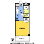 - 間取り 洋室6帖,キッチン2帖,バス,トイレ バルコニー