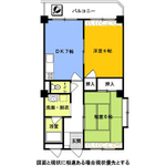 - 間取り 和室6帖,洋室6帖,DK7帖,バス,トイレ,バルコニー