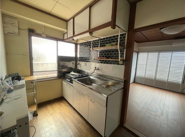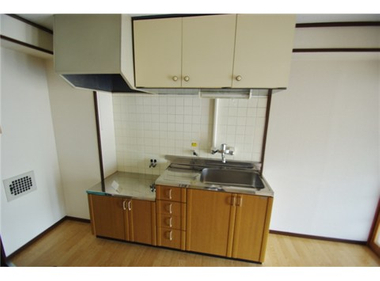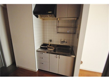 駐車場付き キッチン・洗面台のきれいな2DKマンション。エアコン一台・ガスコンロ新設します